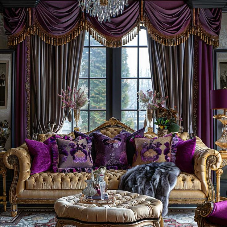 - Plush fabrics: Velvet curtains, velvet sofas, and chenille throws